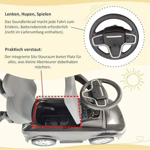 💎 SPIELERISCHE FÖRDERUNG DER MOTORIK – Mit dem Rutscherauto ab 1 Jahr unterstützt du die motorische Entwicklung deines Kindes auf natürliche Weise. Das Lenken und Schieben des Kinderfahrzeugs trainiert Absprache, Kraft und Gleichgewicht. Gleichzeitig weckt das Soundlenkrad die Neugier deines Kindes und regt die Sinne an – spielerisch lernen und wachsen!