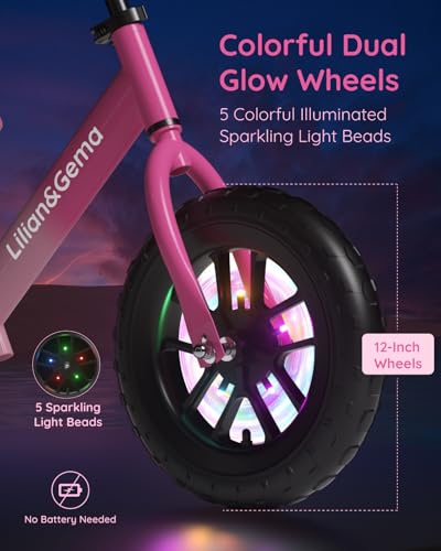 Lilian&Gema Laufrad ab 2 Jahre, Laufrad Buntes Beleuchtete Räder, Licht Laufrad Kinder Lenkrad und Sattel Höhenverstellbar, 12 Zoll Laufräder, Balance Bike für 2-5 Jahre, Kinder Laufrad