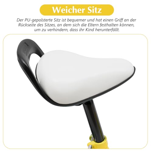 Höhenverstellbar: Der Sitz kann von 46cm (18.1″) auf 53cm (20.9″) und der Lenker von 78cm (30.7″) auf 84cm (33.1″) erhöht werden. Auch wenn das Nachfahre größer wird, muss das Fahrrad nicht häufig ausgetauscht werden.