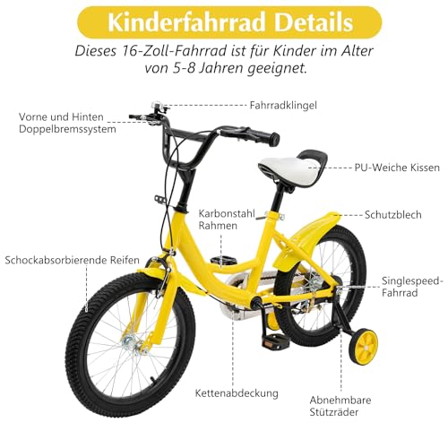 Lilyeriy 16 Zoll Kinderfahrrad mit stützräder Fahrräder für ab 5-8 Jahre Jungen Kinder Fahrrad Kid Bike mit Höhe Einstellen