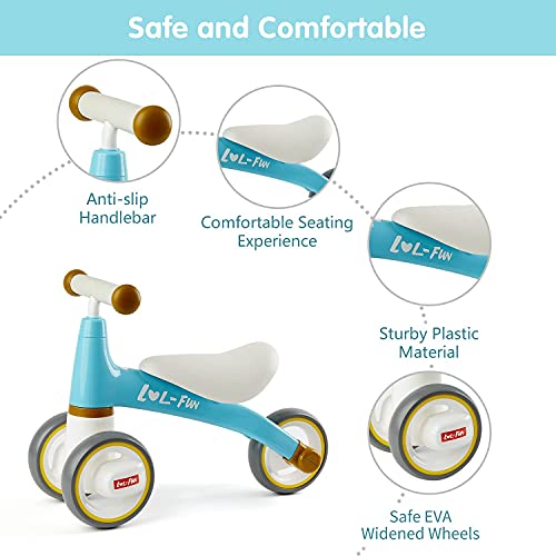 LOL-FUN Kinder Laufrad ab 1 Jahr, Balance Fahrrad Spielzeug für 1 Jahr Jungen Mädchen, Rutschrad Baby Laufrad als Geburtstag Gescenk für 12-18 Monate, Hellblau
