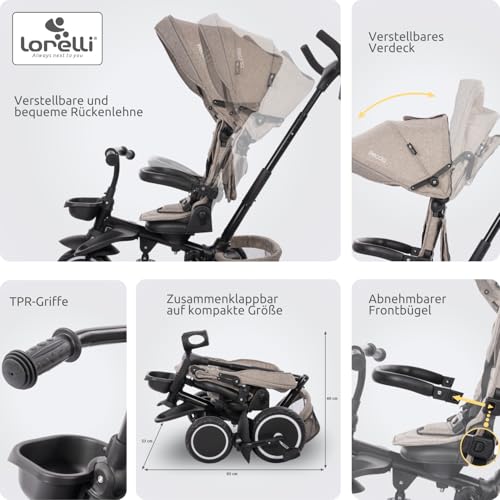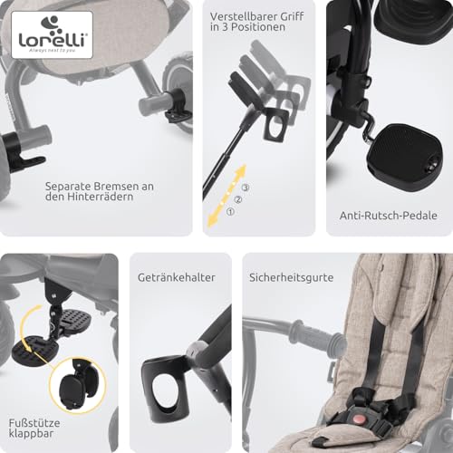 Lorelli Dreirad Freccia ab 1 Jahr mit Schubstange, Sicherheitsgurt, 360 drehbar, Tricycle, Verstellbarer Elterngriff, Freilaufrad Funktion, Getränkehalter, Spielzeugkorb, Schwarz