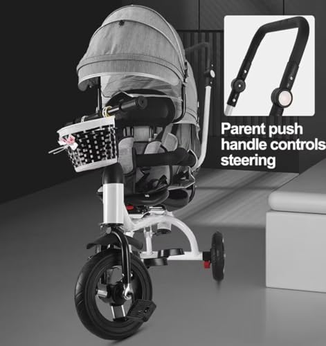 【Kinderwagen für Kleinkinder】 4-in-1-Kinderauto, schnelle Verformung. Vom Kinderwagen-Dreirad bis zum klassischen Tret-Trike. Verdeck, Sicherheitsgurt und Schutzgeländer, Schubstange für Eltern, Fußstützenbretter, sämtliche diese Teile können entfernt werden.