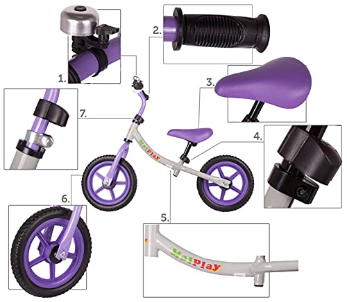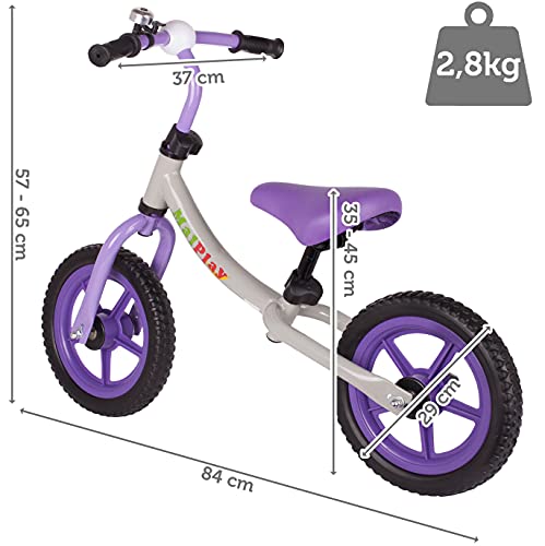 MalPlay Laufrad Violett | mit verstellbarem Sitz und Lenker | mit pannensicheren 12-Zoll-Rädern | bis 30 kg | für Kinder…