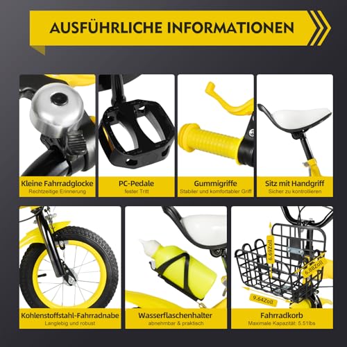 Einfach zu installieren: Unsere Fahrräder sind zu 60% vorinstalliert und Sie müssen im Kontrast dazu ein wenig Zeit und Mühe aufwenden, um die restlichen Teile zu ergänzen, um ein Erfolgserlebnis zu genießen! Verstellbares Design: Die Höhe der Armlehne kann von 20,66 Verzinsung bis 24,21 Verzinsung eingestellt werden, und die Sitzhöhe kann ebenfalls von 18,7 Verzinsung bis 22,04 Verzinsung eingestellt werden, so dass Kinder mit einer Körpergröße zwischen 2,62 Fuß und 3,11 Fuß bequem Radfahren können.