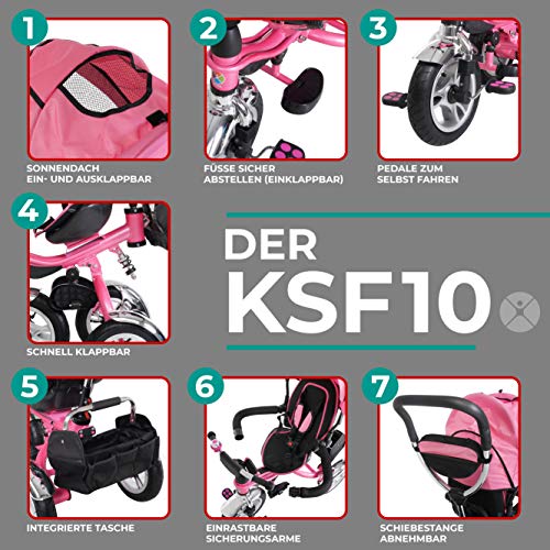 Miweba Kinderdreirad Schieber 7 in 1 Kinderwagen KSF10 – Kinder Buggy – 3-Punkt Sicherheitsgurt – Lenksystem über…
