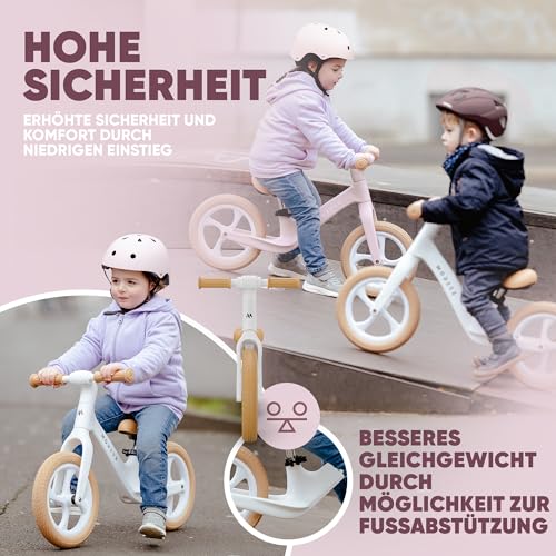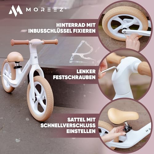 MOREEZ® Laufrad ab 2 Jahre [2-5 Jahre] Ultraleichtes Kinder-Laufrad mit Sturzschutz, Ergonomischer Sitz, 50Kg Pannensichere 12 Zoll Räder, rutschfeste Fußstütze, Höhenverstellbar Mädchen Junge
