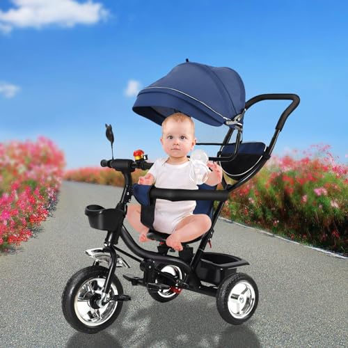 Geeignet für Kinder aller Altersgruppen: Das Baby-Dreirad hat drei Modi, der Schiebemodus eignet sich zum Schieben von den Eltern, das Baby kann auf dem Sitz absitzen und von den Eltern geschoben werden, um den Kinderwagen zu schieben, es eignet sich zum Abwischen des Babys auf einen Spaziergang und das Baby hat einen besseren Blick auf die Außenwelt.