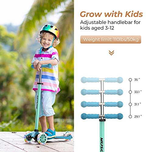muson Kinderroller 3 Räder ab 3-12 Jahre Tret-Roller 74-89CM Höhenverstellbare Kinderroller mit LED Leuchtenden…