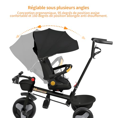【KOMFORT】: Das Vordach schützt Ihr Heranwachsender vor Sonnenlicht, Regen und Wind. Das verstellbare und abnehmbare Verdeck aus 600D Oxford-Gewebe verhindert schädliche UV-Strahlen. Der Sitz ist um 360° drehbar, sodass Sie Ihr Heranwachsender bei Bedarf ohne Lücke in Ihre Richtung drehen können. Der Winkel der Rückenlehne ist ebenfalls verstellbar.