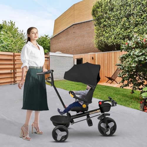 【5-in-1 Multifunktion】: Das Dreirad kann als Kinderwagen, Lauflernwagen, Dreirad und klassisches Dreirad verwendet werden. Das Kinderdreirad ist augenblicklich, multifunktional, wächst mit dem Heranwachsender und kombiniert Kinderwagen & Dreirad. Eine lange Begleitung Ihres Kindes durch verschiedene Altersgruppen.