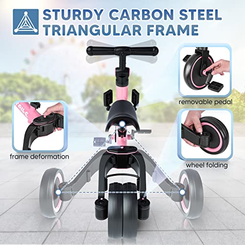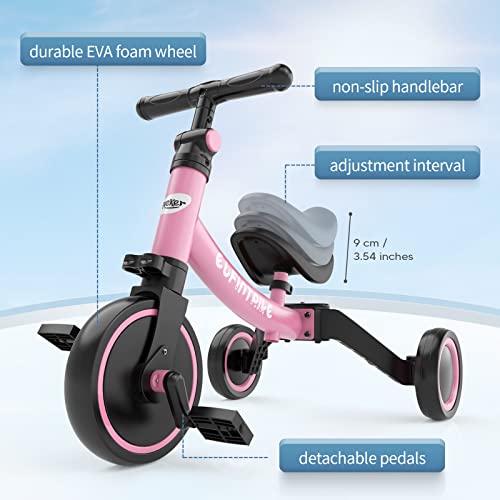 🎁Einfach zu hinzufügen: Nach den Anweisungen des Benutzerhandbuchs kann unser Kleinkinderfahrrad in wenigen Minuten leicht aufgebaut werden, und es ist äußerst bequem, vom Dreiradmodus zum Lauffahrradmodus mit einem Verformungsknopf und abnehmbaren Pedale zu ummünzen.