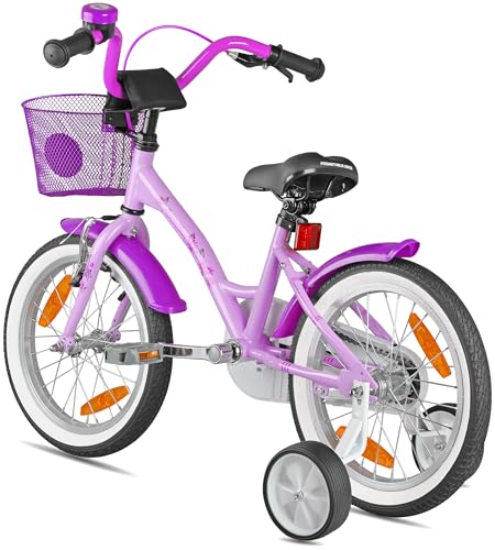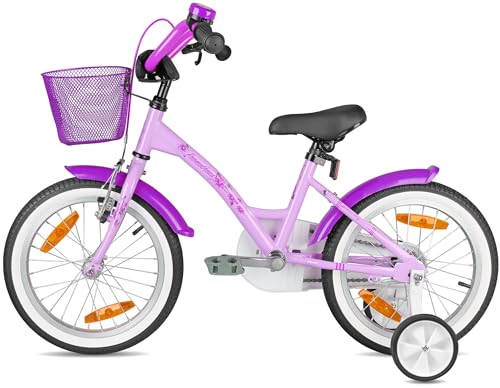 KINDERRAD SICHERHEITSPAKET: Glocke, Lenkerpolster, Lenkergriffe, reflex Entgegen-Rutsch-Pedale, Kettenschutz, Schutzbleche, abnehmbaren Stützrädern ferner große Reflektoren. Dies ist das ideale Fahrrad zugunsten Mädchen.