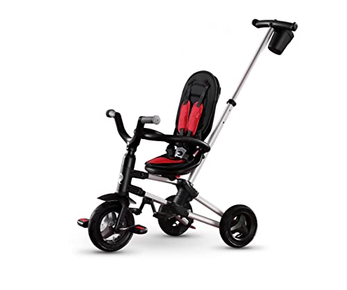 QPlay Nova+ dreirädrigDas QPlay Nova+ ist ein Luxus-Dreirad, sinnvoll für Kinder von 10 bis 36 Monaten. Das Dreirad ist mit einem verstellbaren, teleskopischen Schiebebügel mit Tasche ausgestattet, der die Führung Ihres Kindes erleichtert. Für die Sicherheit Ihres Kindes ist das Dreirad mit Sicherheitsgurten und einem abnehmbaren Sicherheitsbügel und -sitz ausgestattet. Um den Komfort zu gewährleisten, hat das Dreirad ein angenehm weiches Sitzkissen. Ungeachtet alledem hat das Dreirad ein 20,5 cm großes Vorderrad mit verstellbarem Freilauf und zwei 18,5 cm große Hinterräder, eine Lenkstange, mit der Sie Ihr Heranwachsender in die richtige Richtung lenken können, rutschfeste Pedale, die ein Abrutschen der Füße verhüten, eine klappbare Fußstütze, einen Korb vorne und heckwärts und ein klappbares/abnehmbares Verdeck, das sowohl vor Sonne qua vulgo vor Regen schützt. Dank der zusätzlichen Beinplattform können vulgo die Kleinsten das Radfahren genießen. Das Dreirad hat einen Becher- und Flaschenhalter, damit Ihr Heranwachsender unterwegs etwas trinken kann. Das Dreirad ist ohne Lücke zusammenklappbar, so dass Sie es leicht überallhin abwischen können. Massenhaft Spaß bei den Spaziergängen!Spezifikationen:Farbe: rot, schwarzGeschlecht: JuniorMaterial Rahmen: AluminiumMaterial Räder: GummiMaterial Felgen: KunststoffMaterial Lenker: GummiAbmessungen: 93 x 49 x 98 cm (L x B x H)Gewicht: 8 KiloMaximales Ladegewicht: 25 KiloAlter: 10-36 MonateAbmessungen:Lenkerhöhenverstellung: 88-93 cmLenkerbreite: 36 cmHöhe bis zum Lenker: 57 cmAbstand Hinter- zu Vorderrad: 37 cmRaddurchmesser vorne: 20,5 cmDurchmesser des Hinterrads: 18,5 cmAbstand Sitzkante zu Pedalen: 32,5 cmAbstand Sitzkante zu Lenkrad: 14 cmHöhe der Rückenlehne: 39 cmSitzhöhe: 33 cm