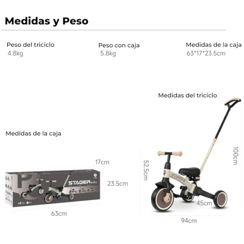 Qplay Trike Stager Evolutionäres Dreirad, 2-in-1, mit Schiebestange für Babys und Kleinkinder, ideal für 1 bis 4 Jahre