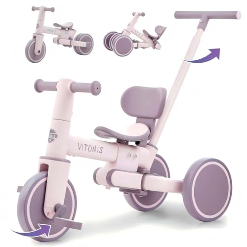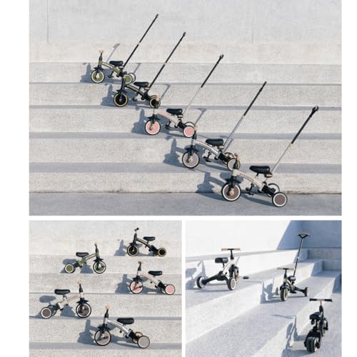 【Eltern-Stange | Kontrolle und Sicherheit】 Inklusive verstellbarer und abnehmbarer Schubstange, ideal für Eltern, um das Dreirad in den frühen Stadien zu lenken, ohne dass das Kind an Stabilität verliert.