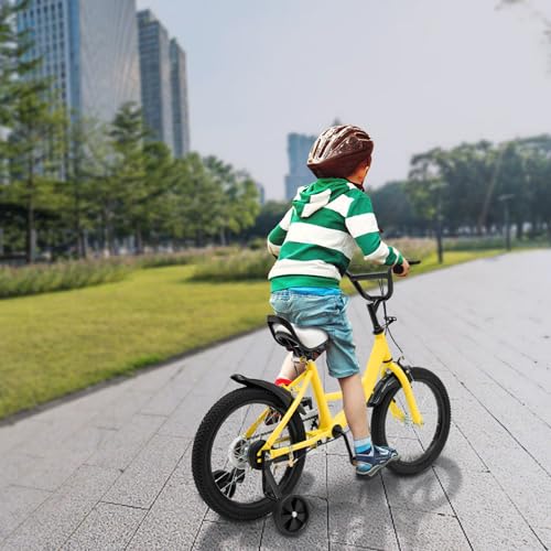 Qussse Kinderfahrrad 16 Zoll Jungen Mädchen Kohlenstoffstahl-Legierung Fahrrad ab 4-8 Jahre Kinder fahrräder Höhenverstellbar Kinderfahrräder mit Stützrädern Hilfsrad Rad (Gelb)