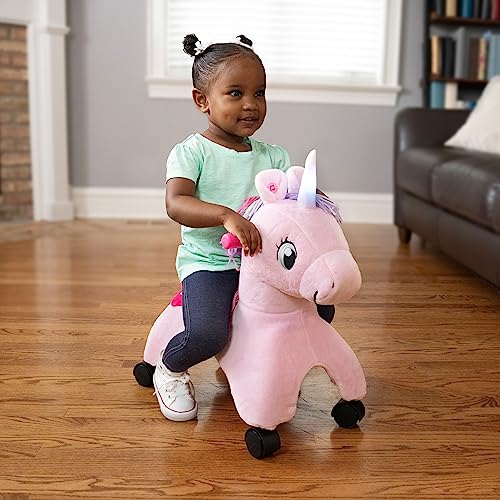 Shimmer, das magische Touch-Einhorn, erwacht auf 3 lustige Arten zum Leben! Durch Streicheln der Nase oder Drücken des Knopfes in Shimmers Ohr werden Musik und Geräusche aktiviert. Diese einzigartige Abzug fördert fantasievolles Spielen, zumal Ihr Abkömmling verschiedene Möglichkeiten erkundet, seine eigenen Geschichten zu erfinden! Das Horn leuchtet ebenfalls auf, wenn sich das Einhorn bewegt. Die Lenkrollen drehen sich um 360° und sind für den Innen- und Außenbereich brauchbar. Die leicht zu greifenden Griffe bieten Komfort und Kontrolle. Das Soundmodul verfügt über einen Ein-/Ausschalter und zwei Lautstärkeeinstellungen. Maximale Tragfähigkeit: 42 Pfund (19,05 kg). Für Kinder im Alter von 1 bis 3 Jahren. Bei Fragen oder wenn Sie Hilfe benötigen, wenden Sie sich bitte an unseren Kundendienst unter https://www.radioflyer.com/customer-service/ oder +1 800 6217613.