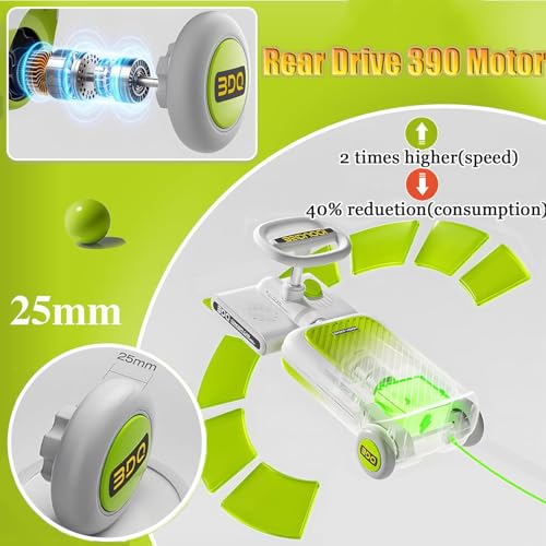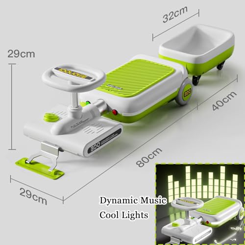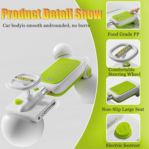 【LEISES UND SPANNENDES SPIEL】 0,98 Preis breites, stoßdämpfendes Hinterrad, leise und verschleißfest. Der Niedriggeschwindigkeitsmodus arbeitet leise und reduziert Geräusche während des Spielens. Perfekt für den Einsatz in Wohnzimmern, auf Terrassen und Einfahrten. Dieses multifunktionale Go-Kart beschäftigt Kinder mit seinen coolen Lichtern, dynamischer Musik und der einzigartigen Wischfunktion und bietet ihnen endlose Stunden voller Spaß und Freude.
