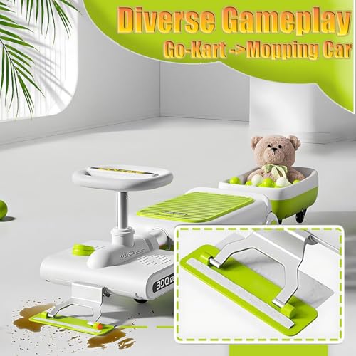 【MULTIFUNKTIONALES REINIGUNGSKART】Dieses innovative Mehrzweck-Reinigungskart für Kinder verfügt über eine einzigartige Wischfunktion. Im Innenbereich können Sie die vordere Teleskophalterung ausfahren und das Reinigungszubehör anbringen, um es in einen Wischmopp und ein Reinigungskart zu verwandeln. Für den Spaß im Freien separieren Sie einfach den Reiniger und setzen den Teleskopständer zurück, um ein traditionelles Gokart-Erlebnis zu genießen. Perfekt für das Spielen im Innen- und Außenbereich!