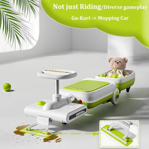 【MULTIFUNKTIONALES REINIGUNGSKART】 Dieses Mehrzweck-Reinigungskart für Kinder hat ein einzigartiges Design. Öffnen Sie beim Fahren im Innenbereich die vordere Teleskophalterung und installieren Sie das Reinigungszubehör. Schon verwandelt es sich in ein Reinigungs- und Wischkart. Verwenden Sie es als Gokart, wenn Sie im Freien fahren, indem Sie den Reiniger herumlungern und den Teleskopständer zurücksetzen.