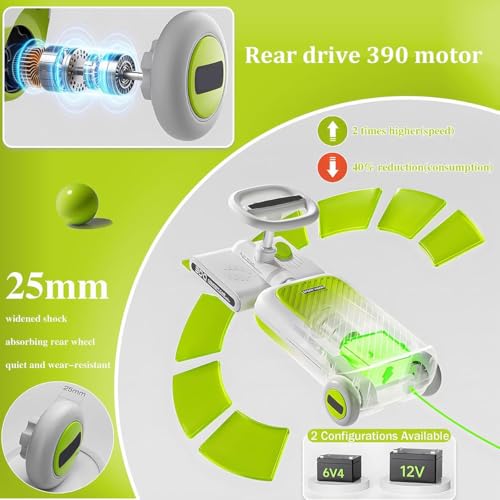 【STARKE LEISTUNG】 6 V große Kapazität und langlebige E-Lebensdauer, kombiniert mit dem hinteren Hochgeschwindigkeitsmotor 550, der Motor ist leistungsstärker und kann problemlos bergauf fahren, ohne zu den Halt verlieren (Einzelantrieb). Die Hinterräder drehen sich feinfühlig, damit Sie den Fahrspaß genießen können.