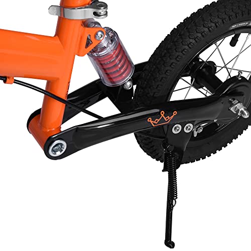 SICHER LERNEN – Der robuste Stahlrahmen, eine nachstellbare Trommelbremse und der 5 mm Aufprallschutz am Lenker sorgen für Sicherheit. Die Antishock-Federung des Balance Bikes sorgt für eine sanfte Abfederung auf unebenem Gelände und erhöht so den Fahrkomfort bei deinem nächsten Ausflug.