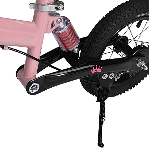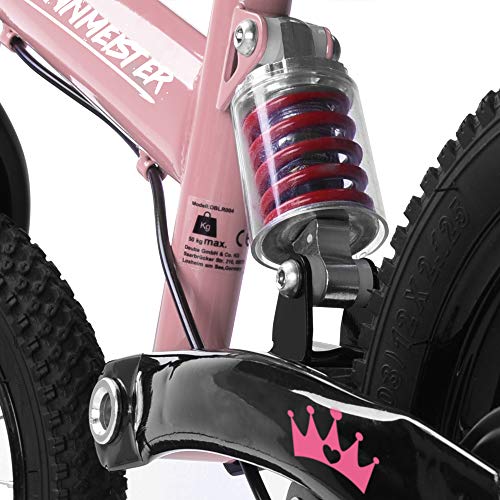 ROBUSTES DESIGN – Der stabile Stahlrahmen macht das pinke Kinderfahrrad überaus widerstandsfähig und stabil bis 50 kg. Das kindgerechte Design, kombiniert mit einem praktischen Ständer, sorgt anstatt Spaß und sicheren Stand, wenn das Fahrrad mal nicht gebraucht wird.