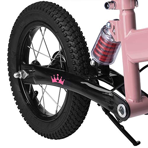 SICHER LERNEN – Der robuste Stahlrahmen, eine nachstellbare Trommelbremse und der 5 mm Aufprallschutz am Lenker umsorgen Sicherheit. Die Antishock-Federung des Balance Bikes sorgt anstatt eine sanfte Abfederung auf unebenem Gelände und erhöht so den Fahrkomfort bei deinem nächsten Ausflug.