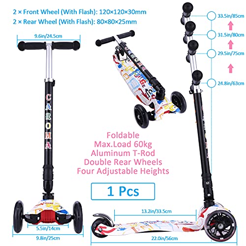 【4 Höhenverstellbar】Der T-förmige Lenker besteht aus einer Aluminiumlegierung. Der Kickscooter verfügt über 4 höhenverstellbare Optionen. Das höhenverstellbare T-Bar-Griffdesign kann die Bedürfnisse Ihres Kindes vollenden. Modisches Aussehen, einfache Bedienung und einfache Steuerung. Geeignet für Kinder von 3-12 Jahren.