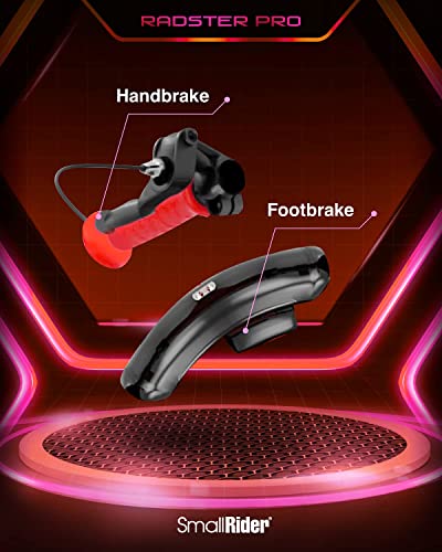 🏎️ Die Handbremse des Roadster Pro AIR verfügt über einen komfortablen flachen Abguss und erfordert weniger Druckkraft. Die Fußbremse wird durch Drücken der „Flügel“ des hinteren Kotflügels aktiviert, wodurch die innere Platte des Kotflügels das Rad berührt und es bremst. Das Vorhandensein von zwei Verzögern macht das Fahren so belastbar wie möglich