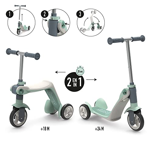 Laufrad und Scooter in einem! Das ist der mitwachsende Little Smoby Switch. Derzeitig bis zu einem Alter von 3 Jahren nutzen Kinder gerne Laufrad UND Roller – hier ist der Little Smoby Switch die ideale Ablösung! Mit wenigen Handgriffen und leer ohne Werkzeuge wird alle dem wendigen Laufrad ein sportlicher Dreirad-Roller. Bereits ab 18 Monaten können Kinder auf dem dreirädrigen Laufrad erste Entdeckungsfahrten unternehmen. Solange lernen Sie wie man allgemeingültig lenkt und schulen ihren Gleichgewichtssinn. Später lässt sich das Laufrad kinderleicht zu einem deputieren dreirädrigen Scooter umbauen. Dies geschieht mittels zweier Schnellspanner und durch ein paar einfache Handgriffe – fertig ist die Verwandlung! Der höhenverstellbare Lenker lässt sich in beiden Fahrpositionen in drei Spezifizieren an die Größe des Kindes drauf setzen. Das große weiche Vorderrad ermöglicht flüsterleisen Fahrkomfort. Der äußerst stabile Metallrahmen des Little Smoby Switch ist von zwei robusten Kunststoffteilen ummantelt, die für Komfort und ein modernes Design sorgen. Die Lenkstange alle Metall ist in drei Spezifizieren höhenverstellbar von 52 bis 63 cm. Die großen rutschfesten Sicherheitshandgriffe mit Aufprallschutz sehen nach sicheres Handling. Produktmaße (LxBxH): 60 x 30 x 63 cm Altersempfehlung: sinnvoll ab 18 Monaten.