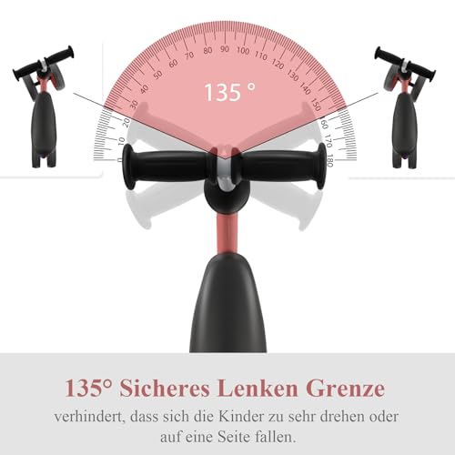 *4 Räder ohne Pedale* Das Laufrad hat ein pedalfreies Design und ist für Babys mit einer Körpergröße von 50 bis 100 cm angemessen. Das 135° begrenzte Lenkungsdesign verhindert, dass Ihr Baby bei scharfen Kurven umkippt.