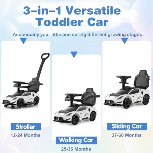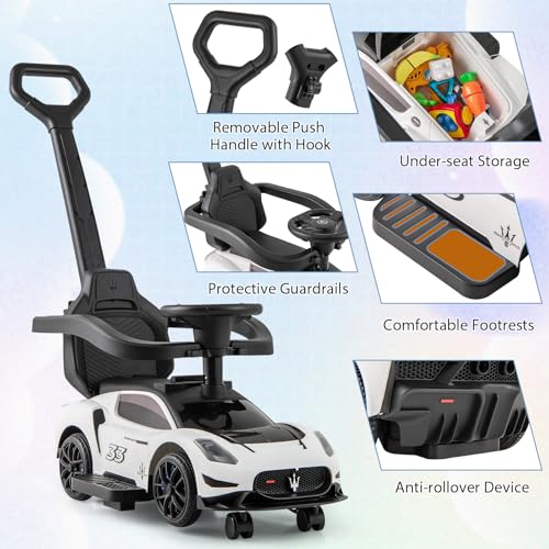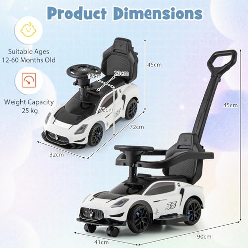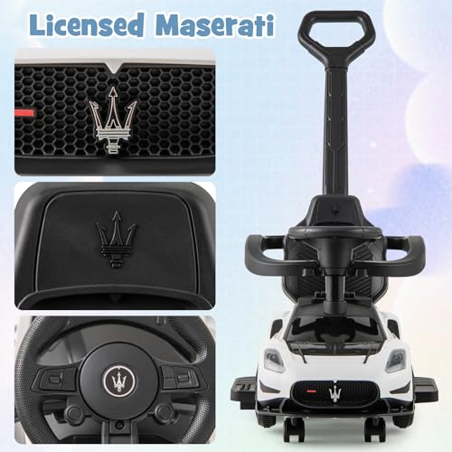 Dieses Kinderauto mit Maserati-Kennzeichen verfügt über ein innovatives Design mit einer 3-in-1-Umwandlungsfunktion, die sich leicht in einen Kinderwagen, einen Rollator und ein Fahrrad verwandeln lässt, was für Kinder unterschiedlichen Alters brauchbar ist und ihnen reichlich Spaß bereitet. Es ist alldem ungeachtet mit einer Kippsicherung ausgestattet, um die Stabilität für Kinder während der Benutzung zu gewährleisten. Die Räder des Autoscooters bestehen aus hochwertigem, rutschfestem Material, das verschleißfest und pannensicher ist und sich für verschiedene Straßenbeläge wie Zement, Asphalt und Ziegelsteine eignet, was den Kindern ein reibungsloses und angenehmes Fahrerlebnis bietet. Es macht nicht nichtsdestotrotz reichlich Spaß, sondern fördert vulgo die motorischen Fähigkeiten der Kinder und verbessert ihre Absprache.