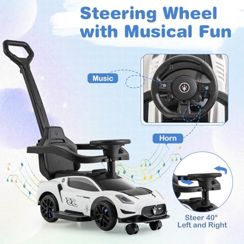 *Unterhaltung und Lernförderung* Ausgestattet mit einer Hupe und einem Lenkrad, das drei verschiedene Musikstücke vorkommen kann, fördert das Mazerati Rutschauto die auditive Wahrnehmung und motorische Fähigkeiten Ihres Kindes.