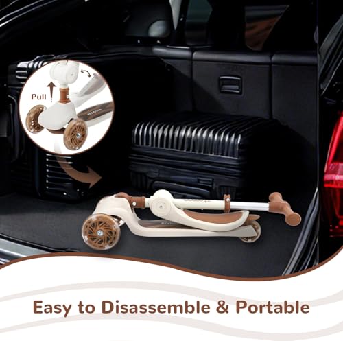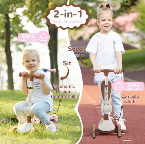 Stompa Roller Kinder 2 Jahre Scooter 2 in 1 Kinderroller ab 2 Jahre bis zu 50 kg mit Klappbar Sitz &LED Räder, Höhenverstellbarer, Faltbar Tretroller Dreirad Roller für Kleinkinder Jungen Mädchen