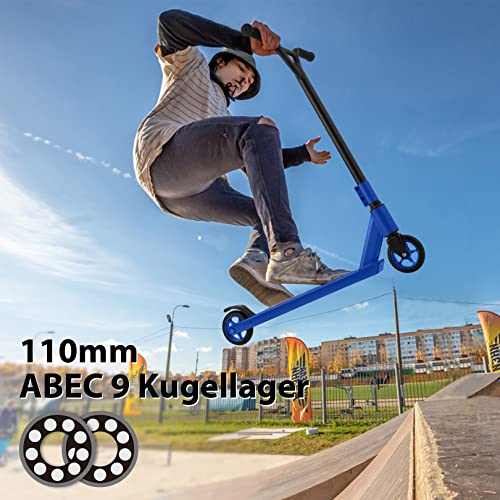 TOP-KOMPONENTEN: 360 ° Y-Lenker ermöglicht es Ihnen, verschiedene schwierige stunt-skateboarding-aktionen flexibel durchzuführen. ABEC 9 Kugellager und 110 mm PU rückprall-räder sind extrem haftende und leise. Es ist flexibler und stabiler bei starken stößen bei landungssprüngen und tricks
