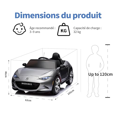 🚗 【Mazda lizenziert】 Dieses Kinder-Elektroauto reproduziert perfekt das klassische Mazda MX5 Cabrio und ist nachlesbar lizenziert. Das realistische Fahrerlebnis ermöglicht es den Kindern, in der Tat in jungen Jahren den Charme der Autokultur und den Fahrspaß zu erleben.