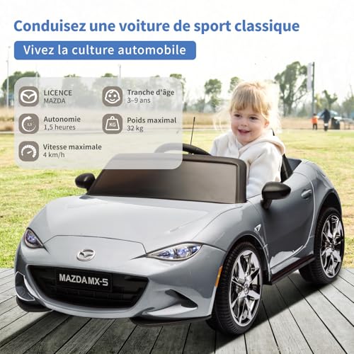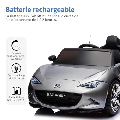 TCARAIWEN 12V Elektroauto für Kinder, Mazda MX-5 Lizenziertes Elektrofahrzeug mit Fernbedienung, Bluetooth-Spieler, Silber