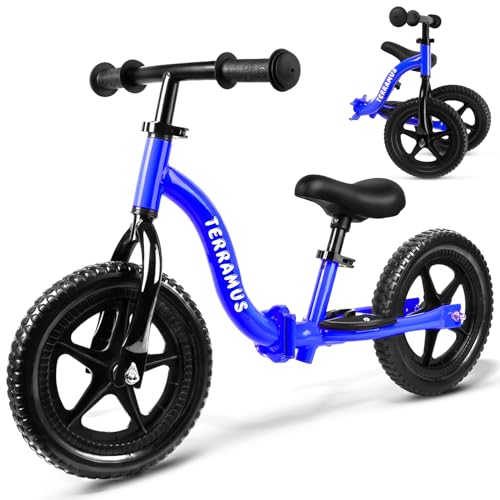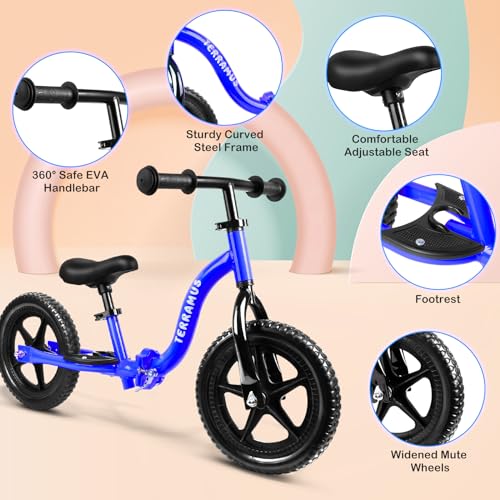 TERRAMUS Laufrad ab 2 Jahre bis zu 40 kg Kinder, 12 Zoll Räder, Höhenverstellbar Sattel und Lenker, Fußstütze, Tragegriff, Ultraleicht Kinderlaufrad Einfache Montage Balance Fahrrad für Jungen Mädchen
