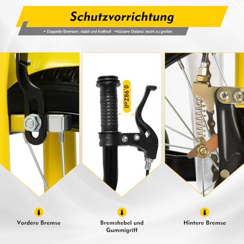 Feinfühliges Verzögern: Ausgestattet mit einer zuverlässigen vorderen Bremssattelbremse und einer hinteren Haltebremse, bietet KinderfahrräDer ein schnelles und präzises Verzögern, so dass auch junge Fahrer die Bremse gefestigt nachprüfen können.