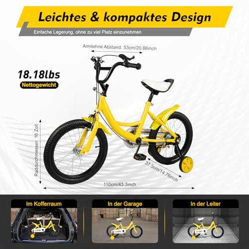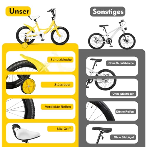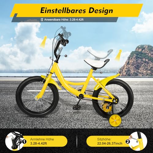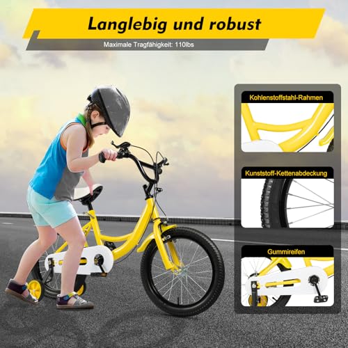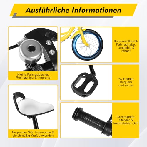 Stabile Struktur: Mit einem robusten Karbonstahlrahmen und einer stabilen dreieckigen Struktur, die durch zwei Zusatzräder verstärkt wird, bietet Kinder Fahrrad eine Tragfähigkeit von 132,28 Pfund, sorgt für ein besseres Gleichgewicht und verhindert ein versehentliches Umkippen.