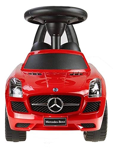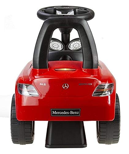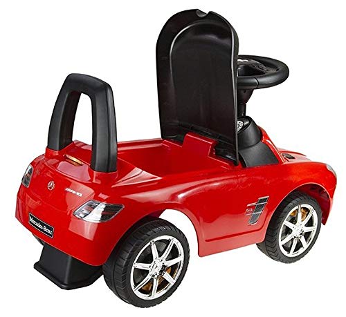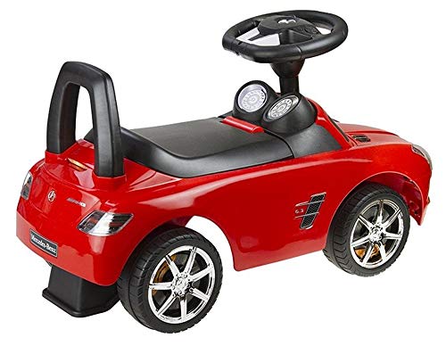 Dieses coole Rutschauto im knalligen Rot und mit dem berühmten Mercedes-Stern auf dem Kühlergrill, am Heck und auf den Felgen und mit aufregenden Soundeffekten wird jedes Kind begeistern.