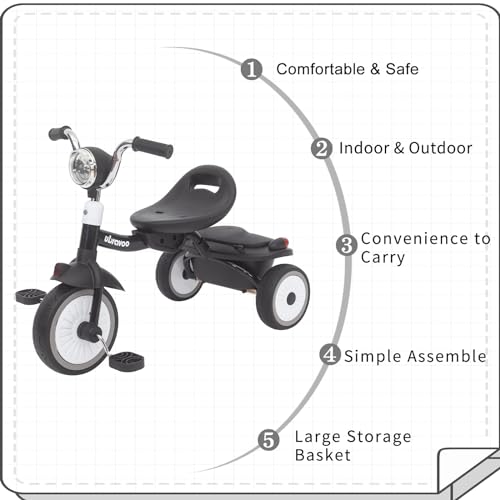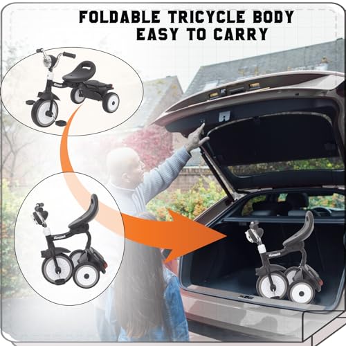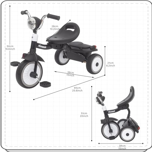 UBRAVOO Baby Dreirad, Klappbares Kleinkind-Dreirad mit Pedalen, Coole Lichter, Robuste Räder und Bequemer Sitz, Baby Erstes Lauflern-Dreirad für 1-5 Jahren im Alter Mädchen und Jungen (Schwarz)