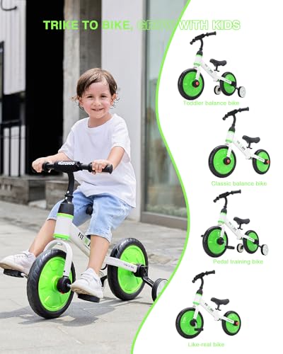 UBRAVOO Fit ’n Joy Kinderfahrrad Fahrräder, 4-in-1 Laufrad für Kinder mit Pedalen und Stützrädern, Trike-to-Bike Kinderrad für Jungen und Mädchen von 2 bis 5 Jahren (Grün)