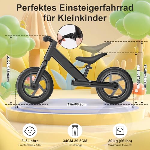 Vankarr Laufrad ab 2 3 4 5 Jahre bis zu 25 kg Kinder Laufrad 12-Zoll Räder mit Sattel höhenverstellbar, Ultraleicht Kinderlaufrad Balance Fahrrad für Jungen Mädchen ab 2-5 Jahre
