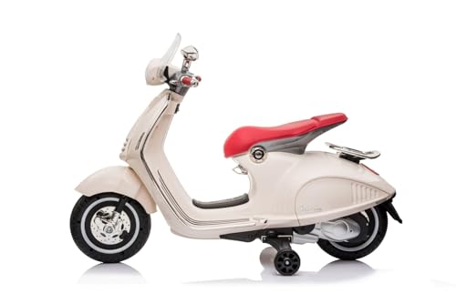 Vespa Kinder Elektroroller, Elektro Kinderroller ab 18 Monaten, Kindermotorrad Elektrisch, Elektrofahrzeuge 1x35W, 3km/h (Weiß)