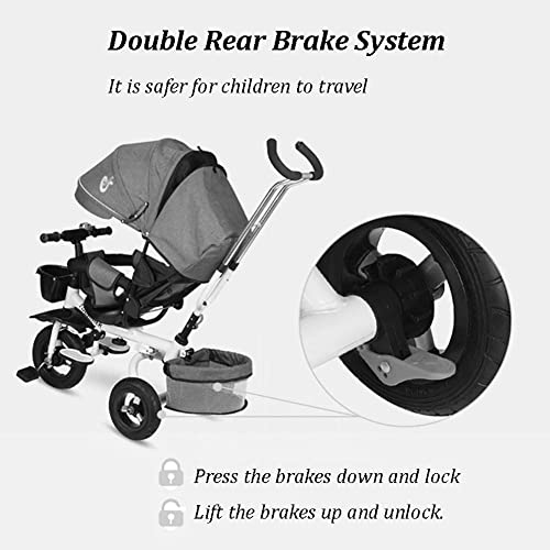 Einfach zu bedienen: Sie können die Fahrtrichtung durch die Schubstange flexibel eintauschen. Der Elterngriff ist über ein Lenkgestänge direkt mit dem Trike-Lenker unselbstständig, sodass Eltern das Dreirad leicht lenken können. Mit den Fußbremsen hinten können Sie das Dreirad jederzeit die Notbremse ziehen. Und es ist einfach zu montieren.