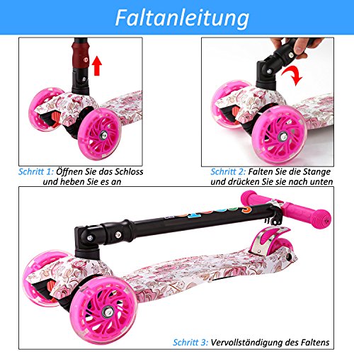 3. Sicherheit 3-Rad-Design & lehnen, um Funktion zu drehen: Einzigartige 3-Rad-Design gibt dem Kick-Roller sowohl zusätzliche Stabilität und Sicherheit. Die dreieckige solide Struktur rollt nicht, Kinder können das Körpergewicht verwenden, um sich nach rechts und links zu neigen, und sie sind nicht leicht zu rollen, wenn sie gespielt werden. Verstärken Sie die Verdickung Anti-Rutsch-Pedal und 3-Rad-Design machen das Fahren Spaß und einfach für Kinder jeden Könnens.