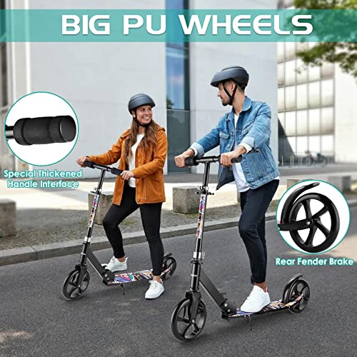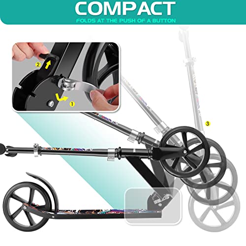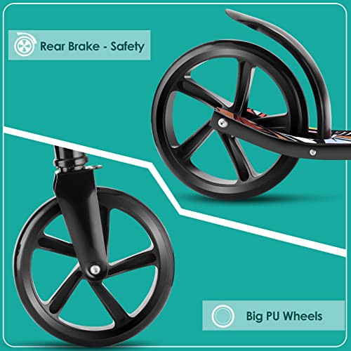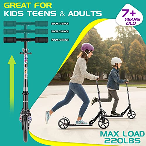 【Guter Pendler-Scooter】Roller mit großen Rädern ab 7 Jahren mit langlebigen 200 mm PU-Reifen und ABEC-7-Deponieren für Fahrten auf Asphalt, Beton, Kopfsteinpflaster, Gras und mehr. Die robuste Aluminiumkonstruktion trägt bis zu 220 lbs und ist damit perfekt zum Überqueren Campus oder vom Büro zur Bushaltestelle. Perfekt für Kinder, Jugendliche und Erwachsene.